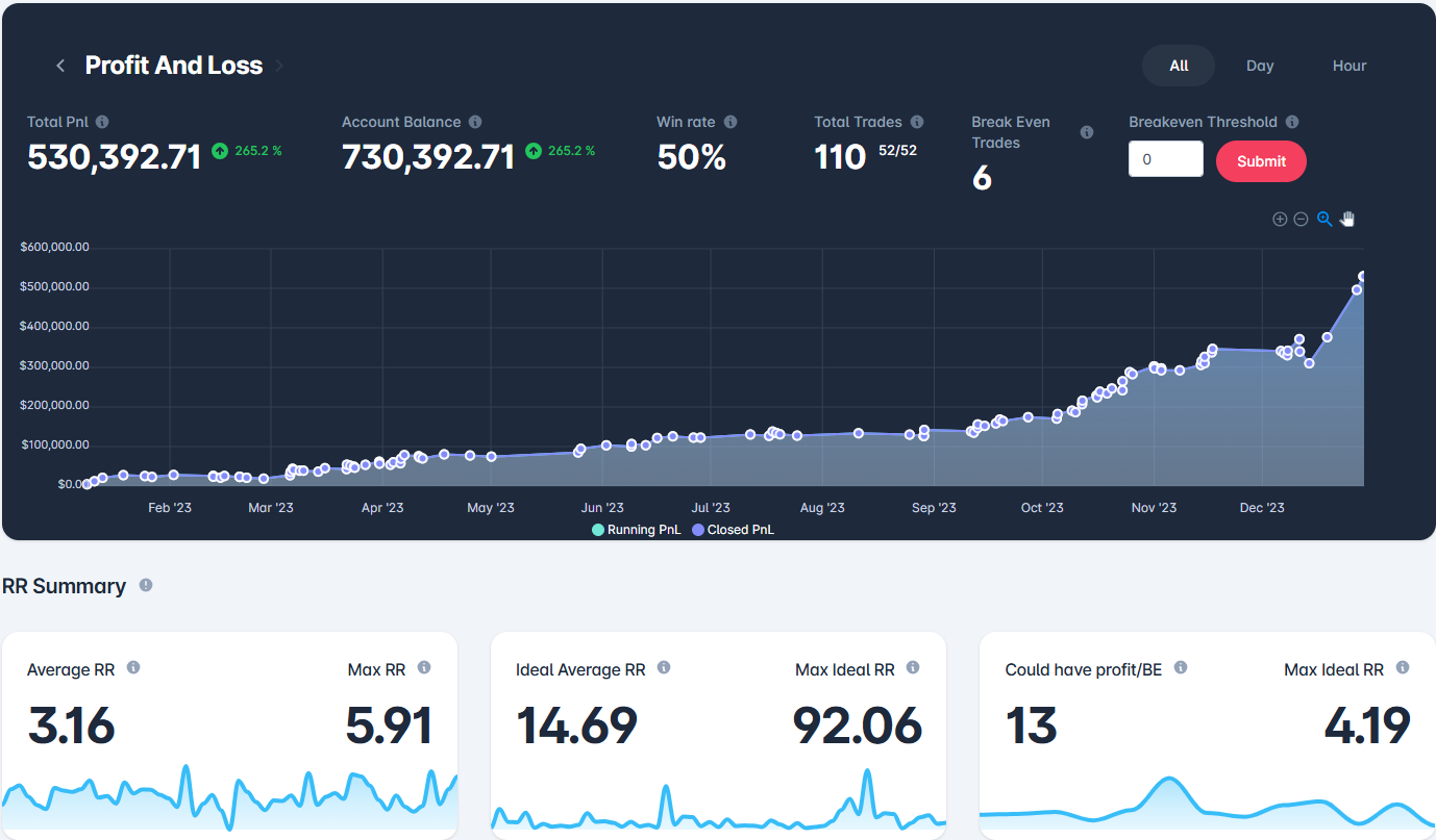 Jeder Trade mit System: Ein Ausschnitt aus den Backtesting-Daten einer meiner technischen Strategien zeigt ihre Zuverlässigkeit in verschiedenen Marktphasen.