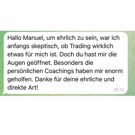 Meine Leidenschaft gilt dem Trading, wo ich meinen eigenen Stil und verschiedene Strategien entwickelt habe. Durch eine Vielzahl an Coachings habe ich Methoden perfektioniert, um mein Wissen effizient und einfach weiterzugeben. Meine Ausbildung ist das Ergebnis dieser umfassenden Expertise und Erfahrung.